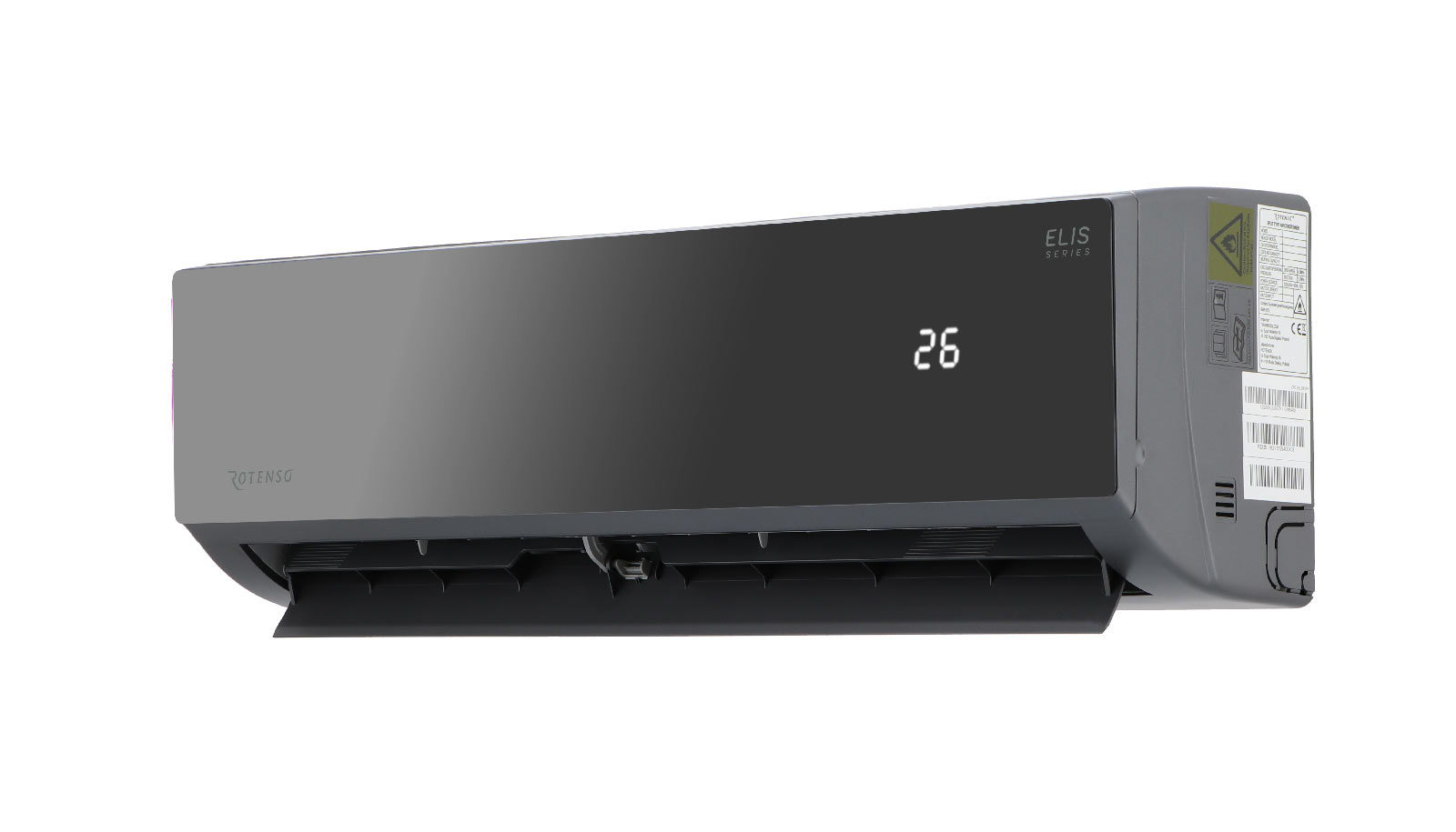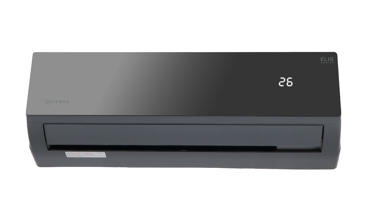 Kliimaseadme Rotenso® Elis minimalistlik ajatu disain, selle grafiidist korpus ja tumedat klaasist lehte imiteeriv esipaneel rõhutavad seadme prestiižset iseloomu. Konditsioneeril on kompaktne ja kompaktne korpus, mille laius on vaid 70 cm. See võimaldab teil paigaldada kliimaseadme raskesti ligipääsetavatesse kohtadesse.